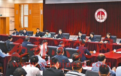 之后,習(xí)近平來到學(xué)生活動中心三層會議室,同中國政法大學(xué)師生和首都法學(xué)專家、法治工作者代表、高校負(fù)責(zé)同志座談。中國政法大學(xué)黨委書記石亞軍、終身教授張晉藩、民商經(jīng)濟(jì)法學(xué)院學(xué)生潘輝和北京市朝陽區(qū)人民法院奧運(yùn)村法庭庭長劉黎先后發(fā)言。他們結(jié)合實(shí)際,談教育管理、教書育人、學(xué)習(xí)生活、法治實(shí)踐。