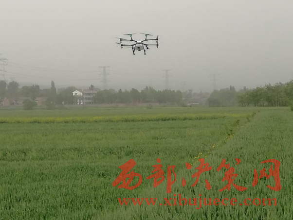 西部決策網(wǎng)-西部大開發(fā)(帥華鋒 李海瑞 通訊員 張蕾)5月5日上午9點,微風拂面、麥浪輕翻,6臺植保無人機正在隴縣東風鎮(zhèn)普樂塬村的麥田上空作業(yè),飛行在距離小麥80公分處均勻地噴灑農(nóng)藥。