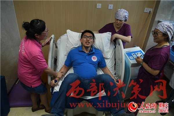 重慶:準(zhǔn)爸爸體驗“分娩痛”表情痛苦大呼受不了
