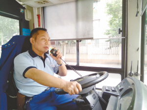 “以前報(bào)站經(jīng)常是扯著嗓子喊,每天嗓子都要‘冒煙’。現(xiàn)在有公交車自動(dòng)播報(bào)系統(tǒng),我就拿著話筒喊。”劉師傅說,他現(xiàn)在每天開車跑3趟,每趟至少要喝一個(gè)8磅水壺裝的水,至少上一次廁所。