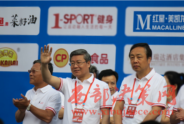 蘭州市委副書記、蘭州市政府市長欒克軍向運(yùn)動(dòng)員揮手致意(杜杰 攝)