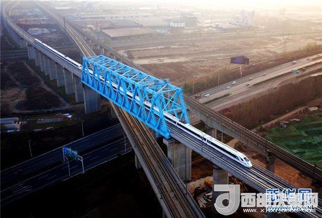 12月19日,一列高鐵從轉(zhuǎn)體成功后的商合杭高鐵跨鄭徐高鐵T構(gòu)梁下駛過。商合杭高鐵線路全長794.55公里,設(shè)計(jì)時(shí)速350公里。