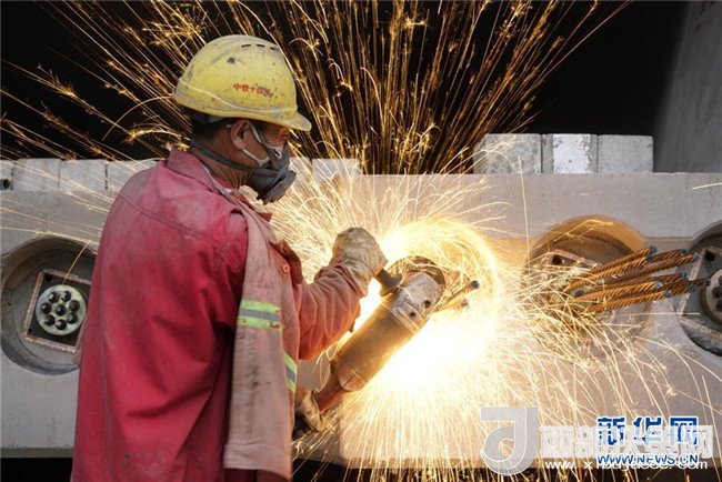 工人在中鐵上海工程局銀西高鐵甘寧段制梁場制作高鐵預(yù)制梁(4月17日攝)。銀西高鐵跨陜西、甘肅、寧夏三省(區(qū)),速度目標(biāo)為250公里每小時(shí),計(jì)劃2020年建成通車,屆時(shí)從西安到銀川將由現(xiàn)在的14個(gè)小時(shí)縮短至3小時(shí)左右。