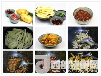 第四步:鍋中倒入適量的油(比平時(shí)炒菜的量要多一點(diǎn)),然后把土豆條放入鍋中,中小火開(kāi)始煸炒。