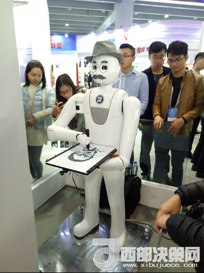 海外人才科技成果展區(qū)展出的賽大千智能畫(huà)像機(jī)器人
