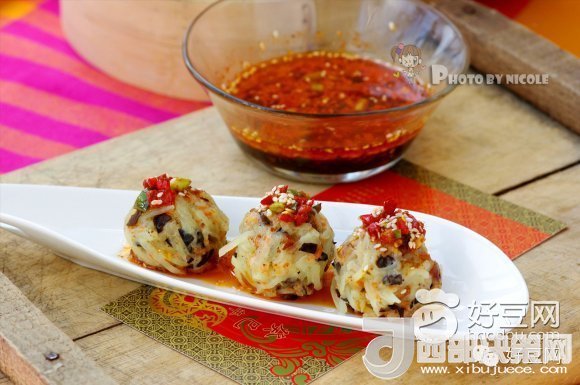 9.鍋中燒水,水開后放入土豆丸子,大火蒸八分鐘;