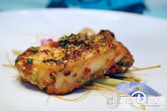 銀鱈魚用來自西雙版納的香料腌漬后,進(jìn)行烤制,風(fēng)味獨特,鮮中帶辣。