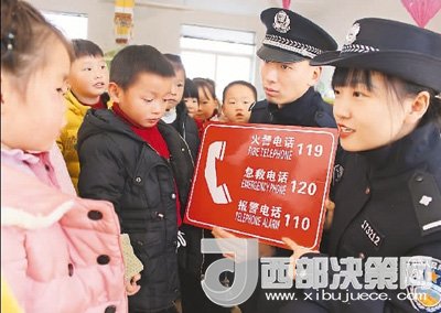 12月25日,浙江省臺州市公安局椒江分局下陳派出所民警深入轄區(qū)中小學校、幼兒園,開展防拐騙、消防安全、交通安全等防范教育,通過講解安全小常識、發(fā)放防范宣傳資料等方面知識,提高學生和幼兒園小朋友安全意識和自我防范能力。圖為民警在教幼兒園小朋友如何撥打緊急求助電話。何文斌 攝(人民視覺)