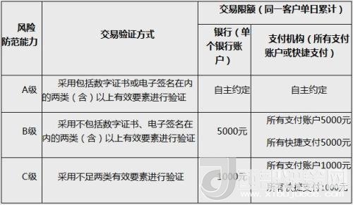 動(dòng)態(tài)條碼支付的風(fēng)險(xiǎn)防范能力分級(jí)及交易限額。截圖自中國(guó)人民銀行網(wǎng)站