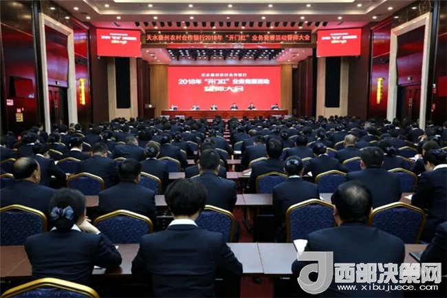 西部決策網(wǎng)-西部大開發(fā)訊(帥華鋒 通訊員 馬存福 漆曉明)1月2日上午8時,天水賓館會議中心燈火通明、濟濟一堂,醒目的橫幅,激昂的誓言,吹響了天水秦州農(nóng)村合作銀行2018年“開門紅”業(yè)務(wù)競賽活動戰(zhàn)斗的號角,擂響了全員沖鋒的戰(zhàn)鼓,拉開了決戰(zhàn)“開門紅”的大幕。