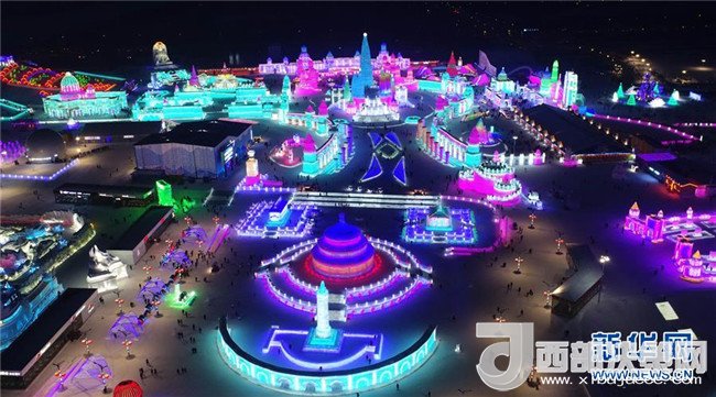 這是航拍的流光溢彩冰雪大世界園區(qū)(1月4日攝)。時下正值嚴(yán)冬,第十九屆哈爾濱冰雪大世界每天吸引著來自天南海北的眾多游客。夜幕初降,冰雪大世界園區(qū)流光溢彩、如夢似幻,成為冰雪童話世界。本屆哈爾濱冰雪大世界占地80萬平方米,用冰量18萬立方米,用雪量15萬立方米。(記者王建威 攝)