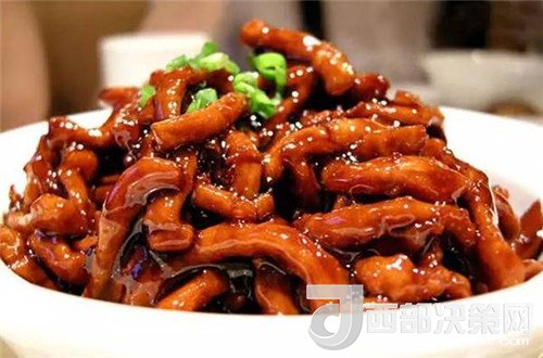 5、炒勻后倒入炒好的肉絲翻炒,待所有肉絲均勻的沾上醬汁即可。