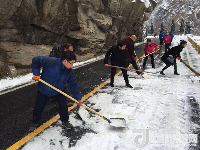 集團重點組織清掃了游客中心、進山公路及主峰區(qū)道路路面積雪,但由于氣溫驟降,路面結冰現(xiàn)象嚴重,員工們頂著刺骨的寒風,揮著鐵鍬、刮雪板、掃帚等工具清掃厚厚的積雪和冰塊,有效確保了主峰區(qū)路面的貫通。