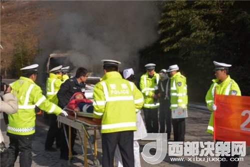 西部決策網(wǎng)-西部大開發(fā)訊(帥華鋒 通訊員 馬存福 漆曉明)1月8日上午11時(shí),甘肅康縣消防大隊(duì)聯(lián)合交警、衛(wèi)生等部門在國道345線康縣段舉行了道路交通事故模擬應(yīng)急處置演練活動(dòng)。