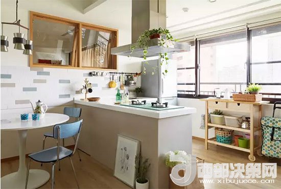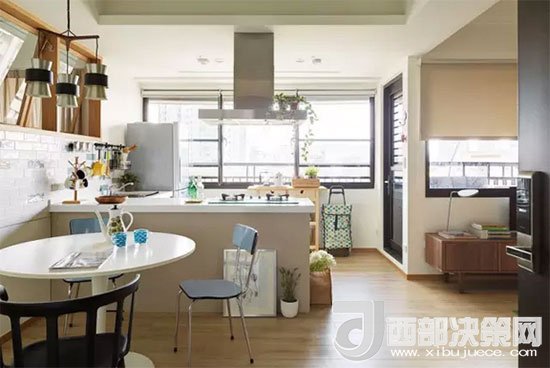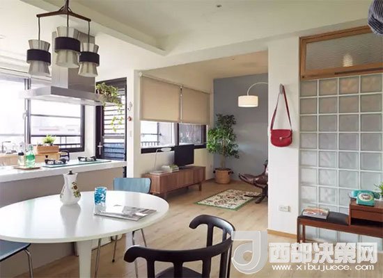 客餐廚一體,沒(méi)有了隔斷小空間一下變大,視線(xiàn)也變得十分通透。