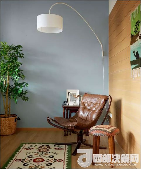 客廳的仿古沙發(fā)椅看著就很舒服。淡藍(lán)色的墻面襯托出白色釣魚(yú)燈優(yōu)美的線(xiàn)條。夜深燈亮,這里肯定是最溫馨的角落。