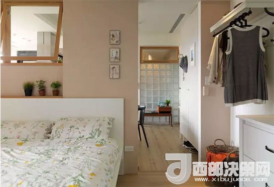 看得出臥室在哪兒?jiǎn)??沒(méi)錯(cuò),臥室就在餐區(qū)和廚房的一側(cè),墻上的窗戶(hù)同樣也是為了增加采光和空氣的流通。