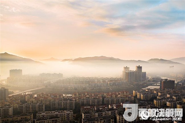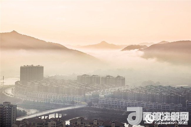 1月18日電1月18日,廣西上思縣城出現(xiàn)了平流霧奇觀,在朝陽渲染下的金黃色霧氣在低空緩緩地流動,樓房在霧氣中若隱若現(xiàn),宛若仙境。