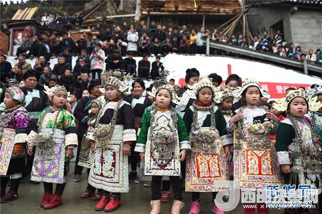 當日是貴州省榕江縣仁里鄉(xiāng)仁吉侗寨大年初二,附近5個村寨的侗族、苗族、水族等少數(shù)民族群眾前來“吃相思”,共同歡慶侗年。“吃相思”是侗族地區(qū)村與村、寨與寨之間舉行的一種民間交往活動。記者戴天放攝
