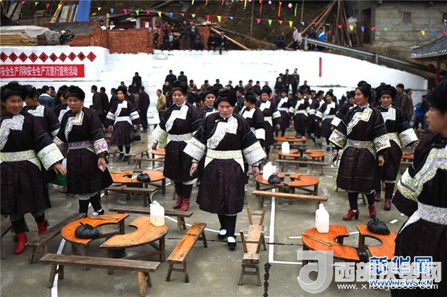 1月18日,在榕江縣仁里鄉(xiāng)仁吉侗寨,侗族婦女準備參加“吃相思”活動。記者戴天放攝