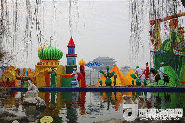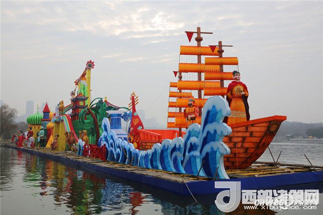 1月22日,記者走進(jìn)大唐芙蓉園,環(huán)芙蓉湖一圈,見2018新春燈會的大型燈組已基本到位,規(guī)模氣勢超大唐芙蓉園歷屆燈會。這組水上燈組濃縮了水陸絲綢之路風(fēng)情。