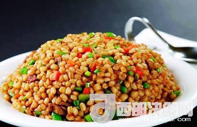 青海西寧臘八節(jié)吃麥仁飯。臘月初七晚上將新碾的麥仁,與牛羊肉同煮,加上青鹽、姜皮、花椒、草果、苗香等佐料,經(jīng)一夜文火煮熬,即可食用。