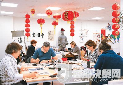 在比利時布魯塞爾的孔子學(xué)院,學(xué)員們練習(xí)中國書法。新華社記者葉平凡攝