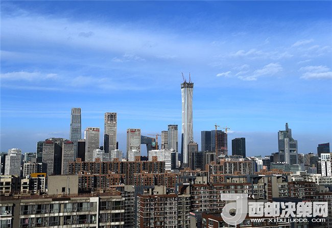 這是藍天白云下的北京CBD(2018年1月22日攝)。新華社記者 羅曉光 攝