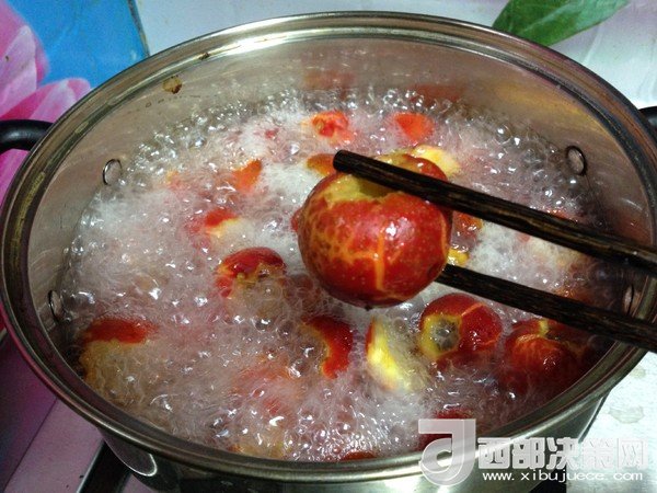 3、煮山楂不要太長(zhǎng)時(shí)間,稍微有些發(fā)胖就行。
