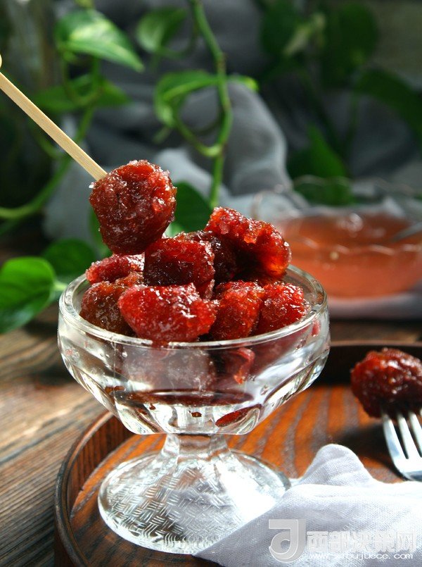 1、用筆桿去核,可以使做出來(lái)的山楂果脯保持完整漂亮的外形。