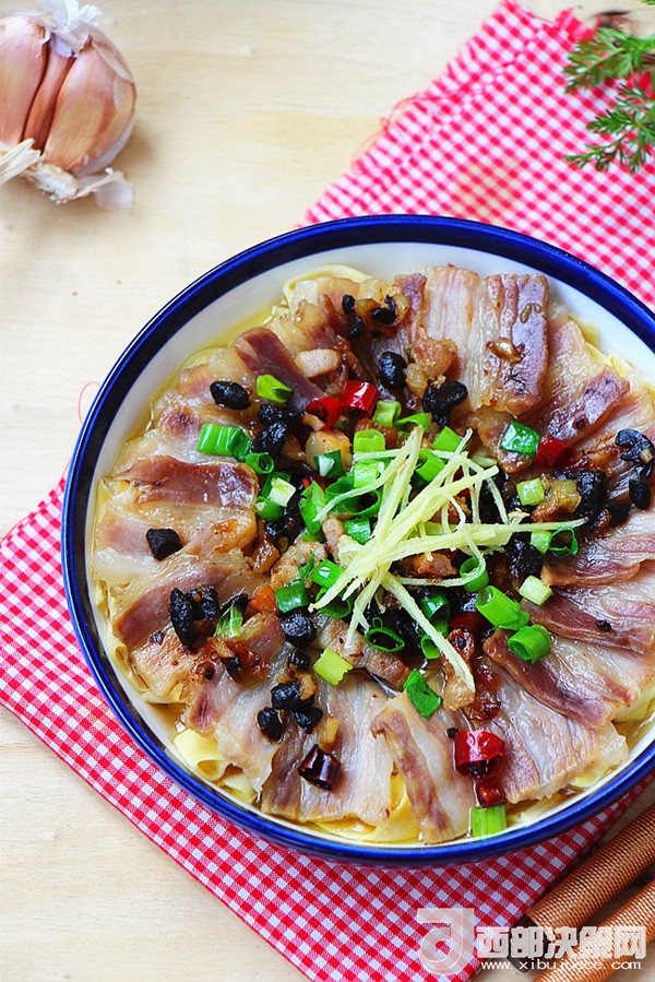 2、蒸制的時(shí)候,千張咸肉中可以加入少許水,我沒有加水,蒸出來稍稍有些干。
