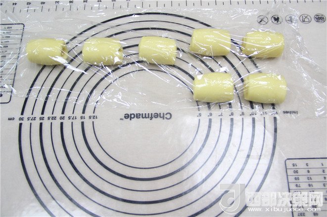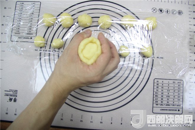 11.把油皮分割成6個25克,油心分成6個20克,分別揉成團。