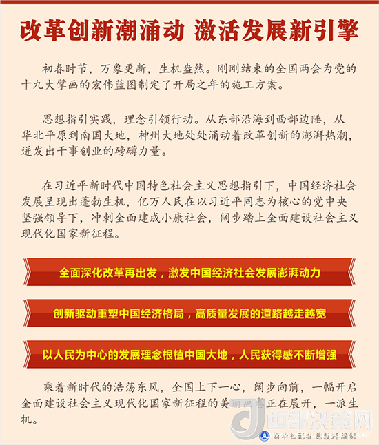 “我們要以更大的力度、更實(shí)的措施全面深化改革、擴(kuò)大對(duì)外開(kāi)放,貫徹新發(fā)展理念,推動(dòng)經(jīng)濟(jì)高質(zhì)量發(fā)展,建設(shè)現(xiàn)代化經(jīng)濟(jì)體系,不斷增強(qiáng)我國(guó)經(jīng)濟(jì)實(shí)力、科技實(shí)力、綜合國(guó)力,讓社會(huì)主義市場(chǎng)經(jīng)濟(jì)的活力更加充分地展示出來(lái)。”習(xí)近平總書(shū)記在十三屆全國(guó)人大一次會(huì)議上的重要講話,再次發(fā)出了全面深化改革的號(hào)召。