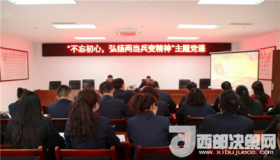 參觀結(jié)束后,兩當(dāng)兵變紀(jì)念館、兩當(dāng)縣國家稅務(wù)局黨員干部于二樓會(huì)議室開展“不忘初心,弘揚(yáng)兩當(dāng)兵變精神”主題黨課及研討活動(dòng),兩當(dāng)兵變宣教科負(fù)責(zé)人、副研究館員茍昌盛同志就兩當(dāng)兵變精神作了深刻闡述。他以時(shí)間為序,從自古英雄出少年、提著腦袋搞兵運(yùn)、兵變打響兩當(dāng)城、等待時(shí)機(jī)再出征、精神永存豐碑聳五個(gè)方面,把大家?guī)У搅四莻€(gè)戰(zhàn)火紛飛的年代,近距離的了解了兩當(dāng)兵變的全過程,對(duì)兩當(dāng)兵變那段光輝歷史有了更深刻的認(rèn)識(shí)。