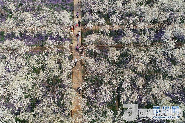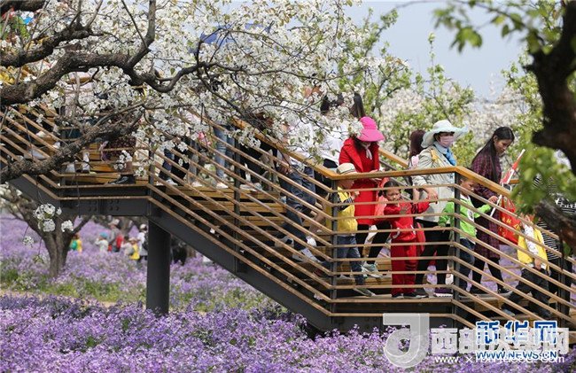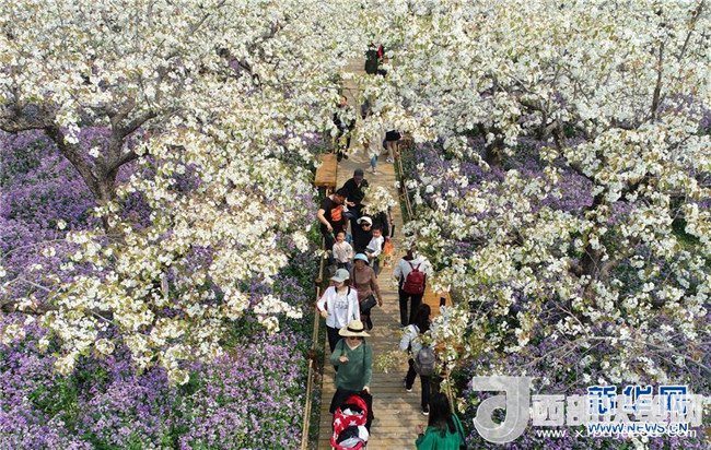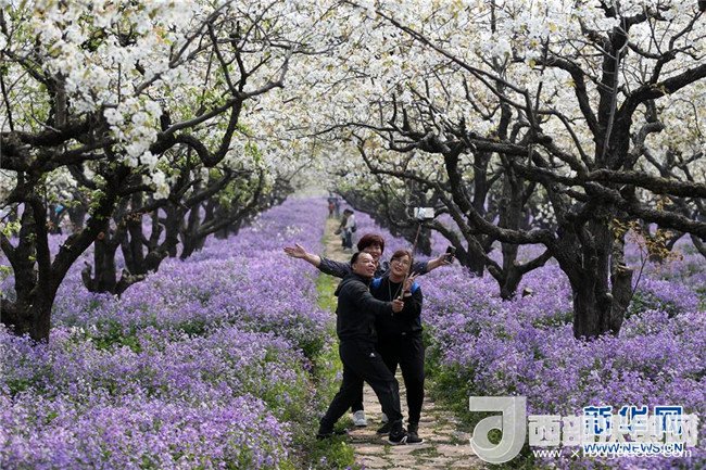 清明時(shí)節(jié),在江蘇省宿遷市三臺(tái)山森林公園梨香滿園景區(qū),白色的梨花和紫色的二月蘭爭(zhēng)相綻放,吸引眾多游客前來踏青賞花。 新華社發(fā)(周國(guó)強(qiáng) 攝)