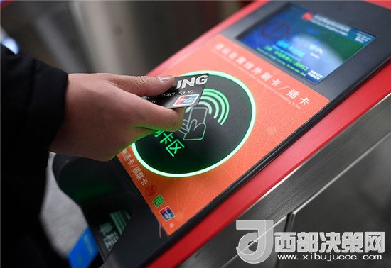 乘客在杭州地鐵豐潭路站體驗(yàn)使用帶有閃付功能的銀聯(lián)IC卡過(guò)閘乘車(2017年12月27日攝)。新華社記者 黃宗治 攝