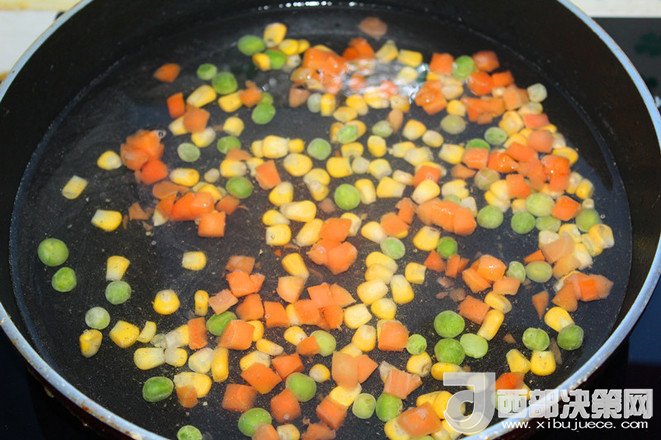 3.蔬菜粒用開水焯一下?lián)瞥隹馗蓚溆?/div>