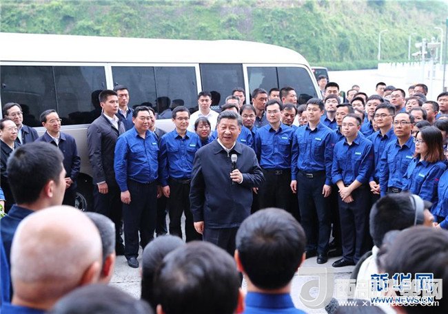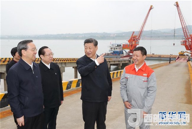 4月26日下午,中共中央總書記、國家主席、中央軍委主席習近平在武漢主持召開深入推動長江經濟帶發(fā)展座談會并發(fā)表重要講話。這是座談會前,習近平于24日中午到興發(fā)集團宜昌新材料產業(yè)園,察看化工企業(yè)搬遷、改造以及碼頭復綠情況。新華社記者 鞠鵬 攝
