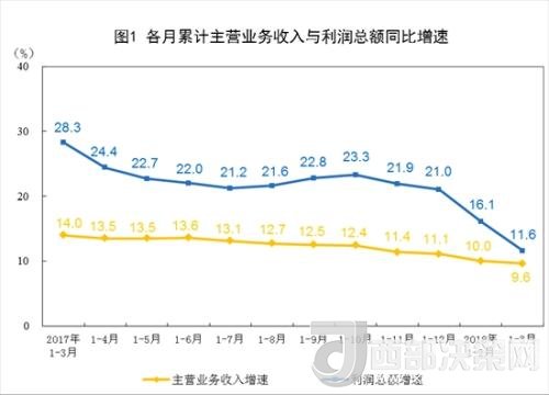 1-3月份,規(guī)模以上工業(yè)企業(yè)實(shí)現(xiàn)主營(yíng)業(yè)務(wù)收入25.2萬億元,同比增長(zhǎng)9.6%;發(fā)生主營(yíng)業(yè)務(wù)成本21.2萬億元,增長(zhǎng)9.4%;主營(yíng)業(yè)務(wù)收入利潤(rùn)率為6.18%,同比提高0.11個(gè)百分點(diǎn)。