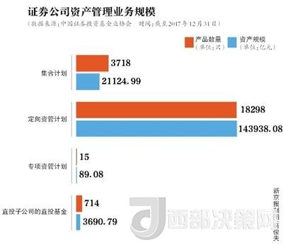 基金業(yè)協(xié)會數(shù)據(jù)顯示,截至2017年末,證券公司資產(chǎn)管理業(yè)務(wù)規(guī)模16.88萬億元,相比2017年一季度末18.77萬億元(最高值)減少1.89萬億元。其中定向資管計劃產(chǎn)品規(guī)模為14.39萬億元,相比2017年一季度末16.06萬億元下滑1.67萬億元。也就是說在券商資管規(guī)??s減的1.89萬億中,8成左右是通道業(yè)務(wù)。