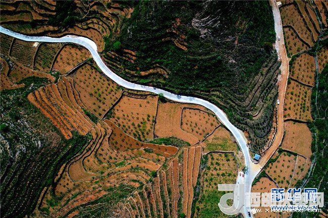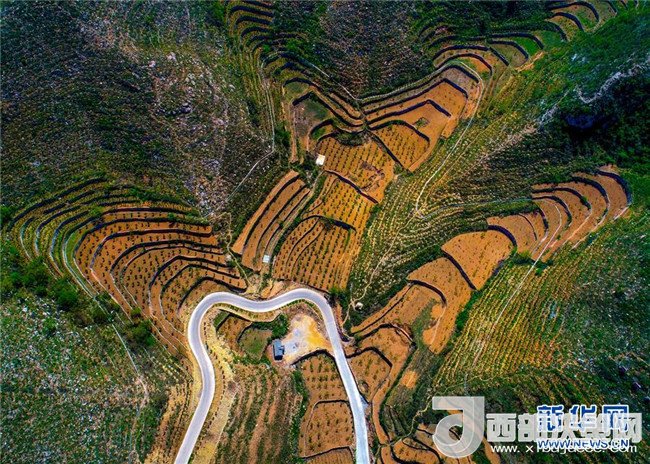 這是5月6日無人機(jī)拍攝的涉縣關(guān)防鄉(xiāng)后池村梯田和公路。