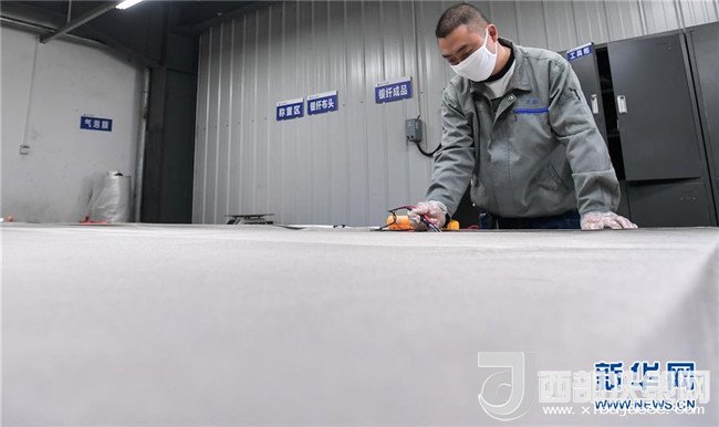 在四川北川天訊新材料有限公司,工作人員對(duì)導(dǎo)電布測(cè)電阻(3月9日攝)。 新華社記者 薛玉斌 攝