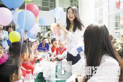 圖為2018年全國科技活動周暨北京科技周活動主場,國家納米科學(xué)中心任紅軒教授為來自張家口的學(xué)生展示“納米夢工坊”便攜納米科普教具,讓學(xué)生感受納米科技魅力。洪星 攝