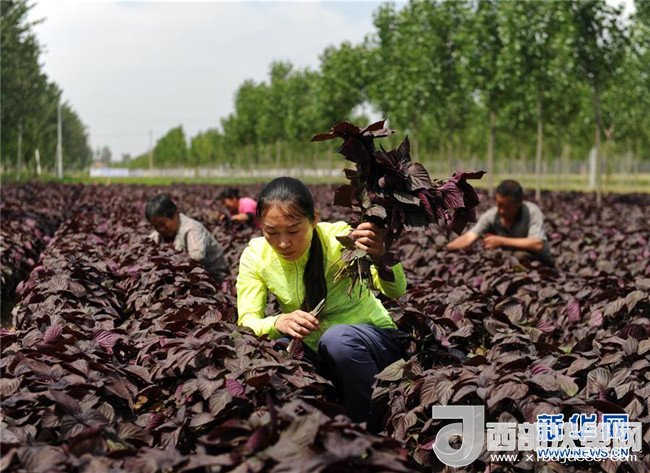 河北省吳橋縣曹洼鄉(xiāng)上村馬村農(nóng)民收獲中藥材紫蘇(5月26日攝)。