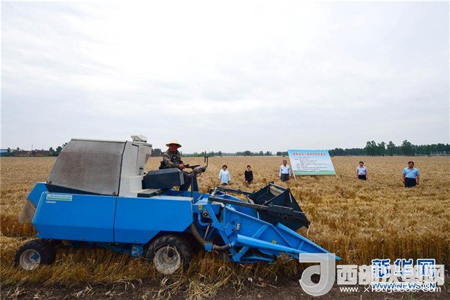 當(dāng)日,在河南省鄧州市腰店鎮(zhèn)國家雜交小麥項(xiàng)目制種基地,專家組對(duì)小麥進(jìn)行田間隨機(jī)多點(diǎn)取樣調(diào)查,收割機(jī)對(duì)小麥進(jìn)行實(shí)打?qū)嵤铡y產(chǎn)數(shù)據(jù)表明,雜交小麥種子生產(chǎn)在豐產(chǎn)性、抗逆性、抗病性、適應(yīng)性等方面表現(xiàn)優(yōu)異,標(biāo)志著我國雜交小麥研發(fā)進(jìn)入大田應(yīng)用和產(chǎn)業(yè)化階段。新華社記者 馮大鵬 攝