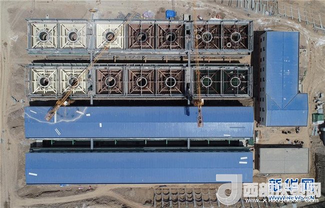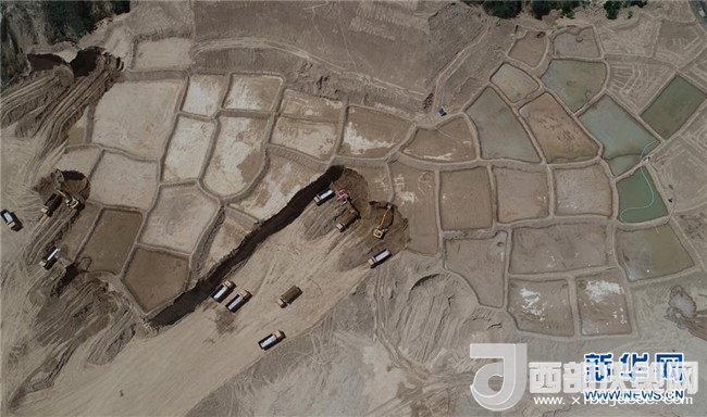 延安黃河引水工程泥沙處理站施工現(xiàn)場(chǎng)(5月30日無(wú)人機(jī)拍攝)。