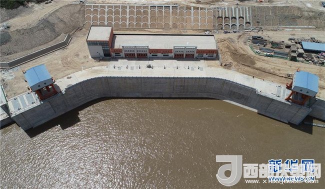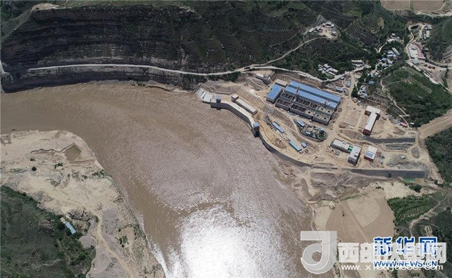 延安黃河引水工程取水樞紐施工現(xiàn)場(chǎng)(5月30日無(wú)人機(jī)拍攝)。