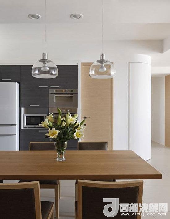 透明的圓弧形吊燈成為餐廳里的點(diǎn)睛之筆,輕巧又有設(shè)計感。
