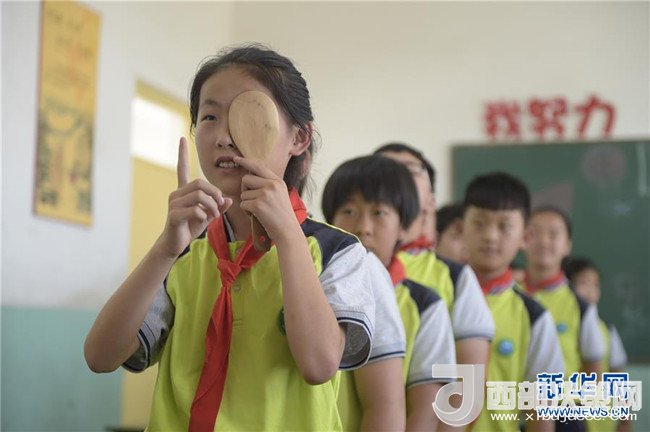 6月5日,廊坊市安次區(qū)仇莊鄉(xiāng)大王務中心小學學生在操場上體驗蒙眼行進,通過游戲的方式感受保護視力的重要性。