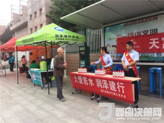 西部決策網(wǎng)——西部大開發(fā)訊(帥華鋒 通訊員 齊彩云 嵇祥)6月7日,建行慶陽分行組織員工,在這個特別的日子開展了“大愛若水,潤澤建行”助力高考學子活動,在高考期間,考生及家長可在我行設立的補水站處憑準考證領取1瓶礦泉水,為寒窗苦讀的學子與焦急等待的家長送去了關懷。